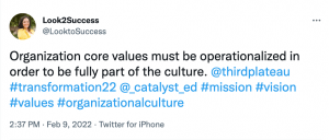 ted a conversation about building a shared language around how to talk about white supremacy culture shows up and moving towards implementing anti-racism practices. The team at Third Plateau hosted “Values-Driven Leadership: Aligning Culture & Strategy to Drive Impact’ and touched on how to make core values useful, what it looks like for these values to manifest in people, and evaluating if they get your organization to its desired outcome.
